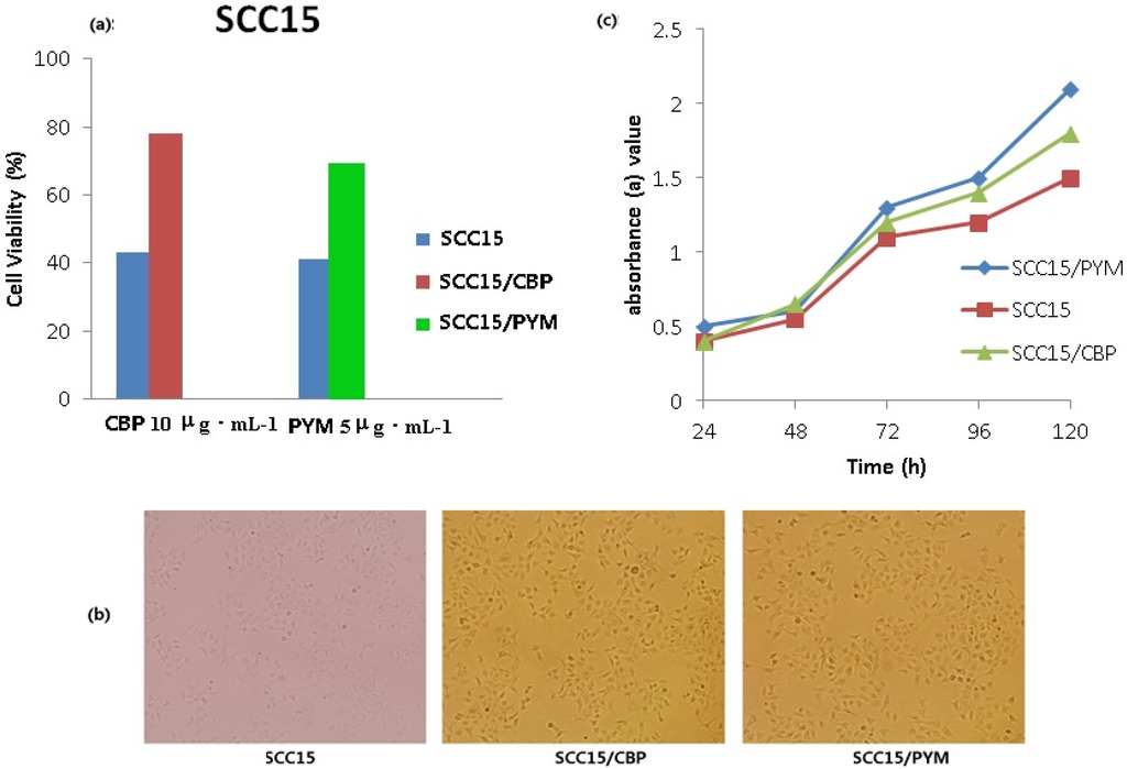 2.3. Identification of the Induced Drug-Resistant SCC15/CBP and SCC15/PYM Cells