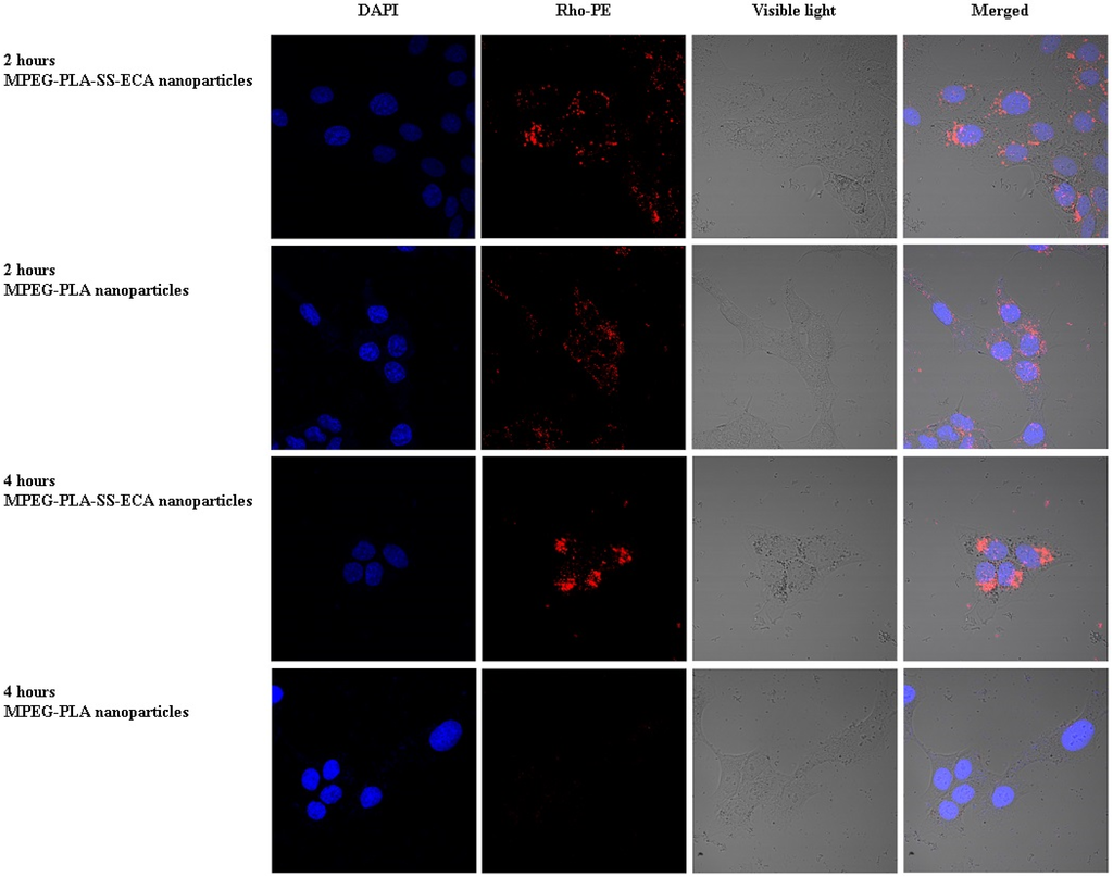 Cellular uptake behavior of MPEG–PLA–SS–ECA nanoparticles.