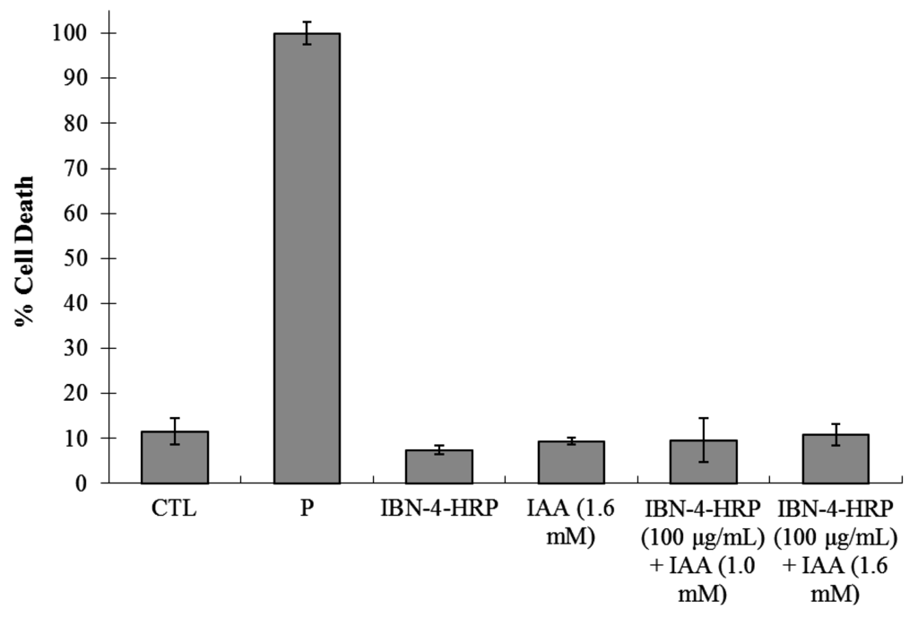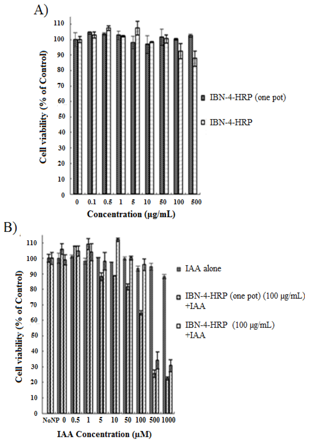 2.3. IAA-Dependent Cytotoxicity of HRP Encapsulated IBN-4