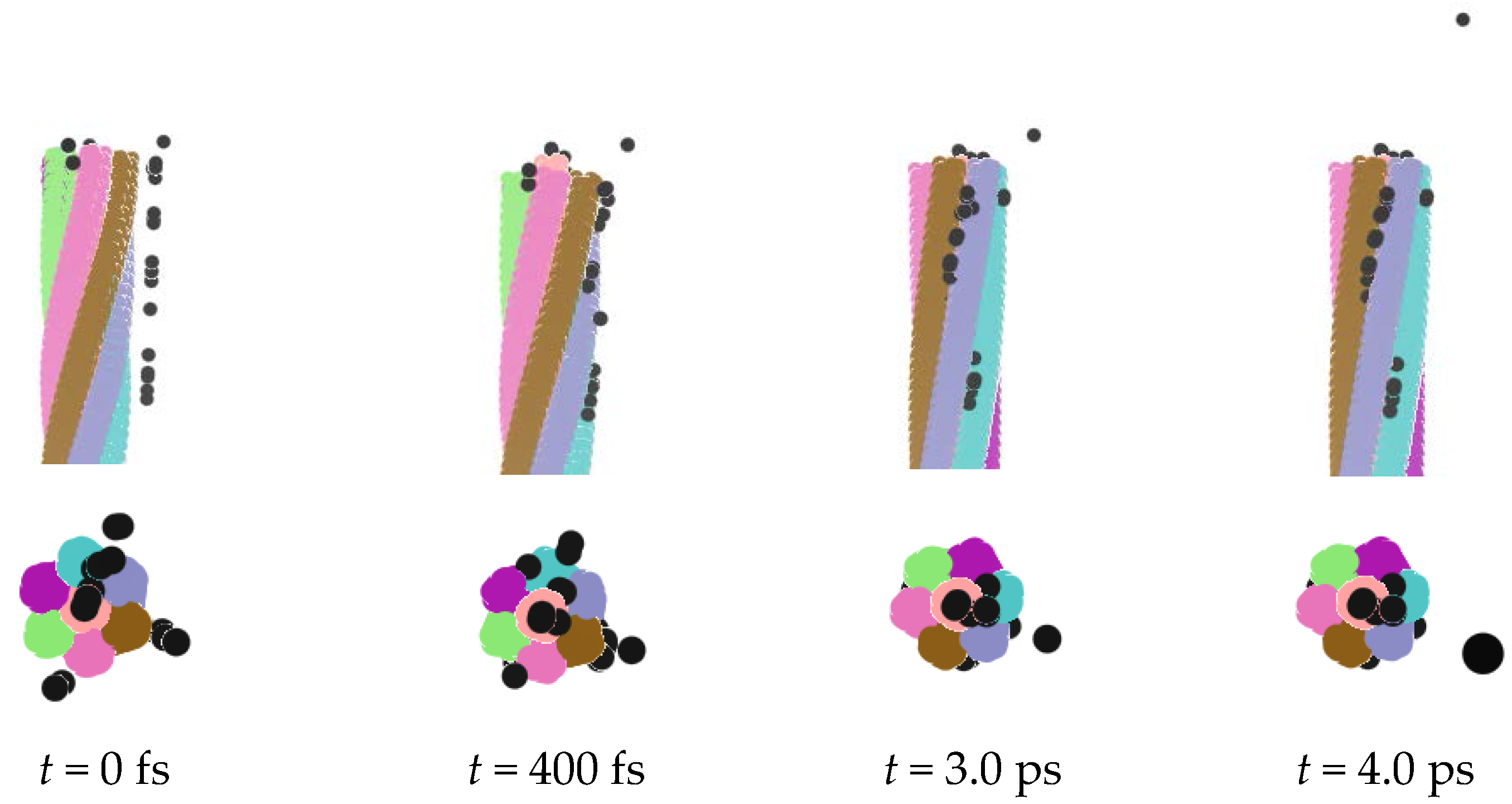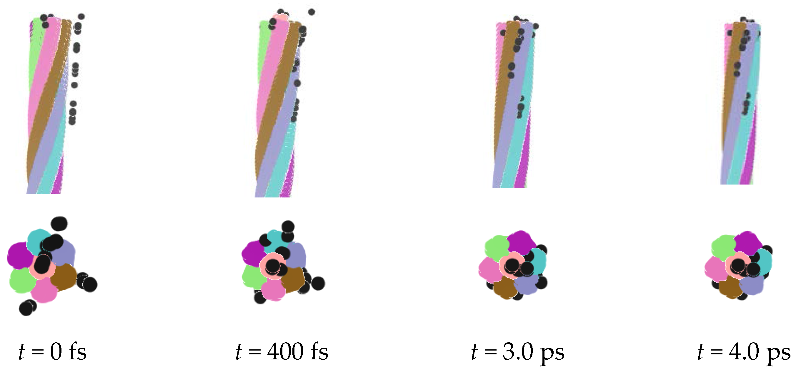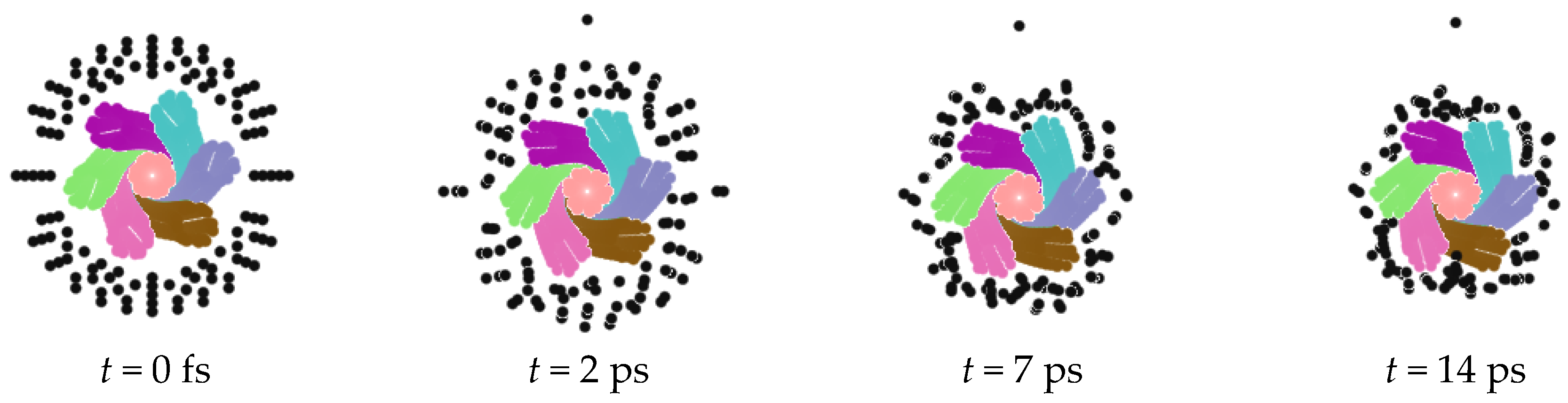 - Plimpton, S. Fast parallel algorithms for short-range molecular-dynamics. J. Comput. Phys. 1995, 117, 1–19. [Google Scholar] [CrossRef]