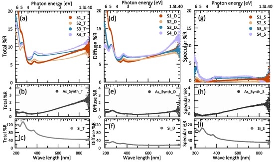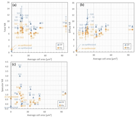 3.3. CNT Honeycomb Cell Areas vs. Total, Diffuse, and Specular Reflectance
