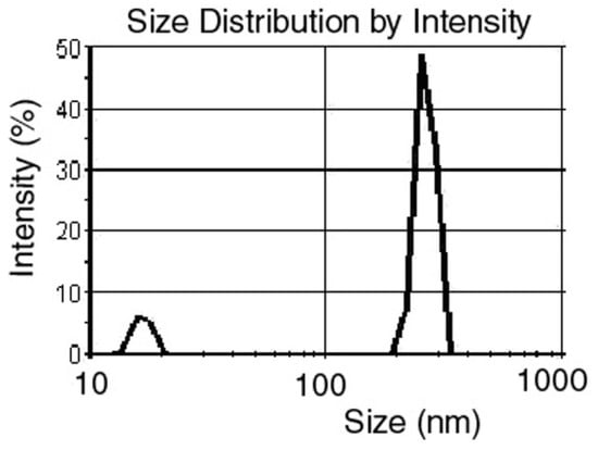 The CH, SCH and SDZ/CH solutions used for electrospinning were prepared in 9/1 glacial acetic acid/water solvent with 1.5 wt % polymer concentration. The SDZ/CH mixture had the composition 31/69 wt % SDZ/CH to match the SDZ content in the SCH derivative. The CH easily solved in the acetic acid giving a high viscous solution with a dynamic viscosity higher than 400 mPa·s at 20 °C, while SCH had low solubility in the acetic acid solution, forming a turbid stable suspension which maintained its aspect even after two days or more. The stability of the SCH suspension was sustained by dynamic light scattering (DLS) analysis which showed a main stable particle population (~250 nm Z-average size and ~20 nm half-width) (Figure 1). Its zeta potential (+20 mV) was within the stability limit for suspensions. The SDZ component in the SDZ/CH mixture had also low solubility, but the high viscosity of the CH component solution inhibited SDZ sedimentation.