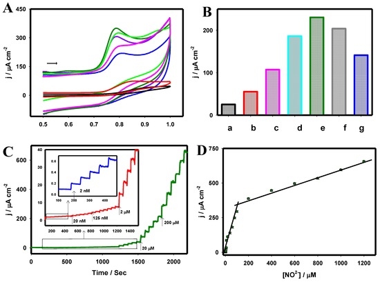 - Shahid, M.M.; Rameshkumar, P.; Pandikumar, A.; Lim, H.N.; Ng, Y.H.; Huang, N.M. An Electrochemical Sensing Platform based on a Reduced Graphene Oxide–Cobalt Oxide Nanocube@Platinum Nanocomposite for Nitric Oxide Detection. J. Mater. Chem. A 2015, 3, 14458–14468. [Google Scholar] [CrossRef]