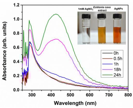 3.2. Preparation of Aqueous Extract of Ecklonia cava and Biosynthesis of AgNPs