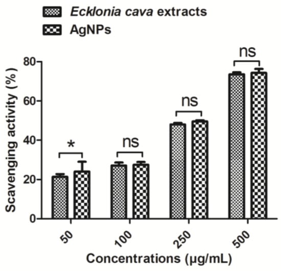 2.7. Antioxidant Activity by Biosynthesized AgNPs