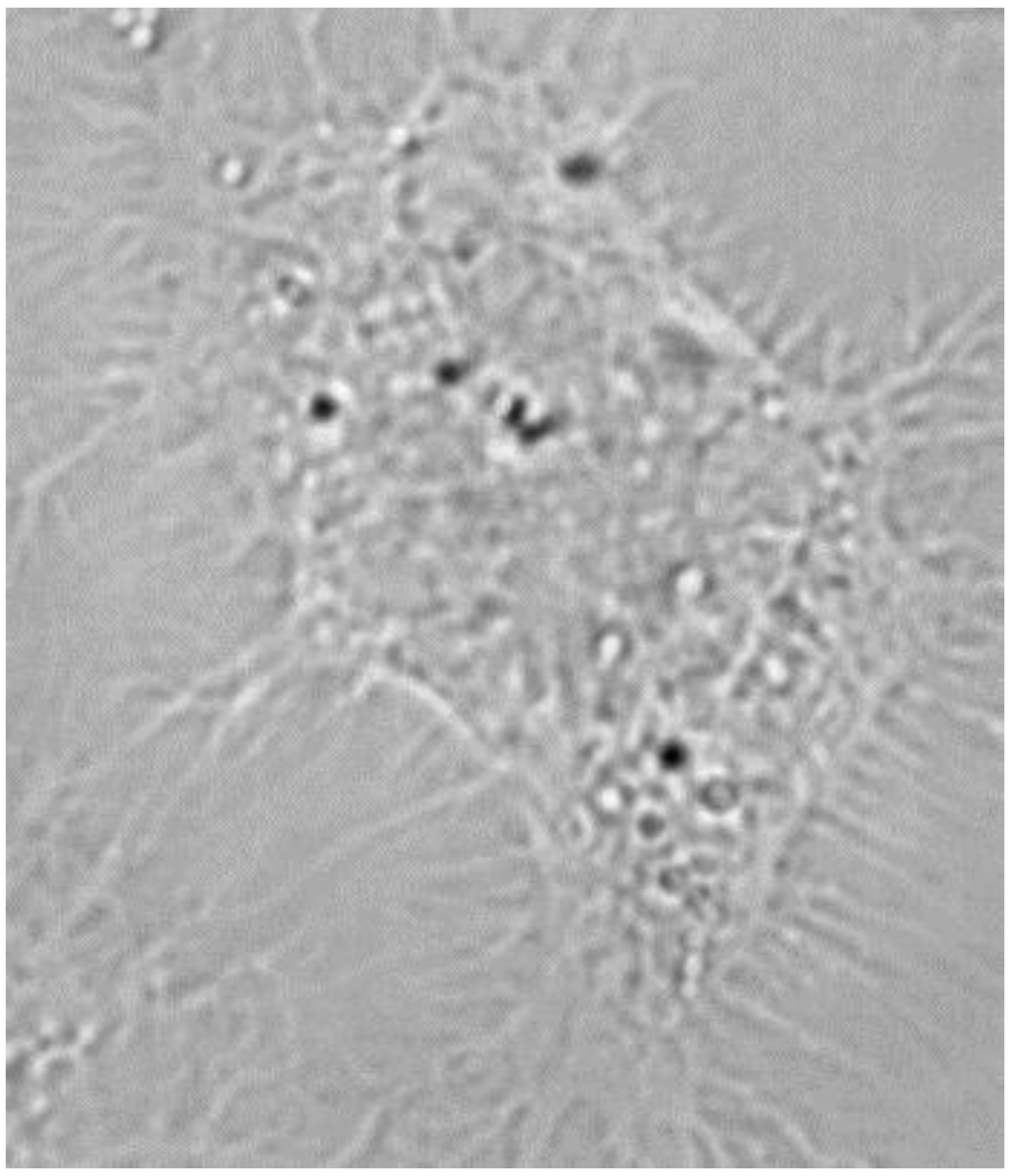 Optical microscope image of a cell that has not been exposed to PS. Black dots are normally visible inside cells although they have not been exposed to PS.