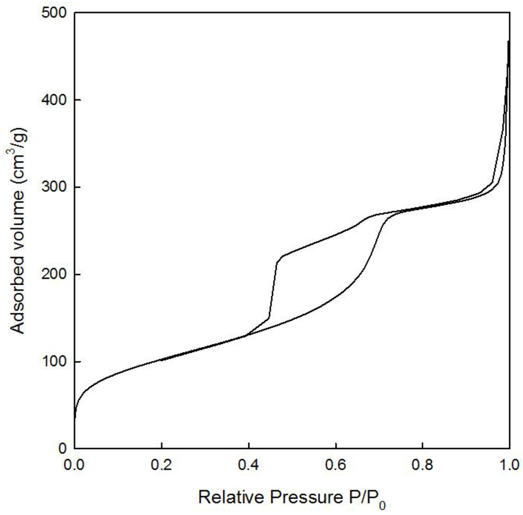 Textural properties of the samples were determined by N2 physisorption using a Micromeritics ASAP 2020 automated system (Micromeritics Instrument Corporation, Norcross, GA, USA) with the Brunauer-Emmet-Teller (BET) and the Barret-Joyner-Halenda (BJH) methods. Prior to adsorption measurements, samples were degassed under vacuum (0.1 Pa) for 4 h at 300 °C.