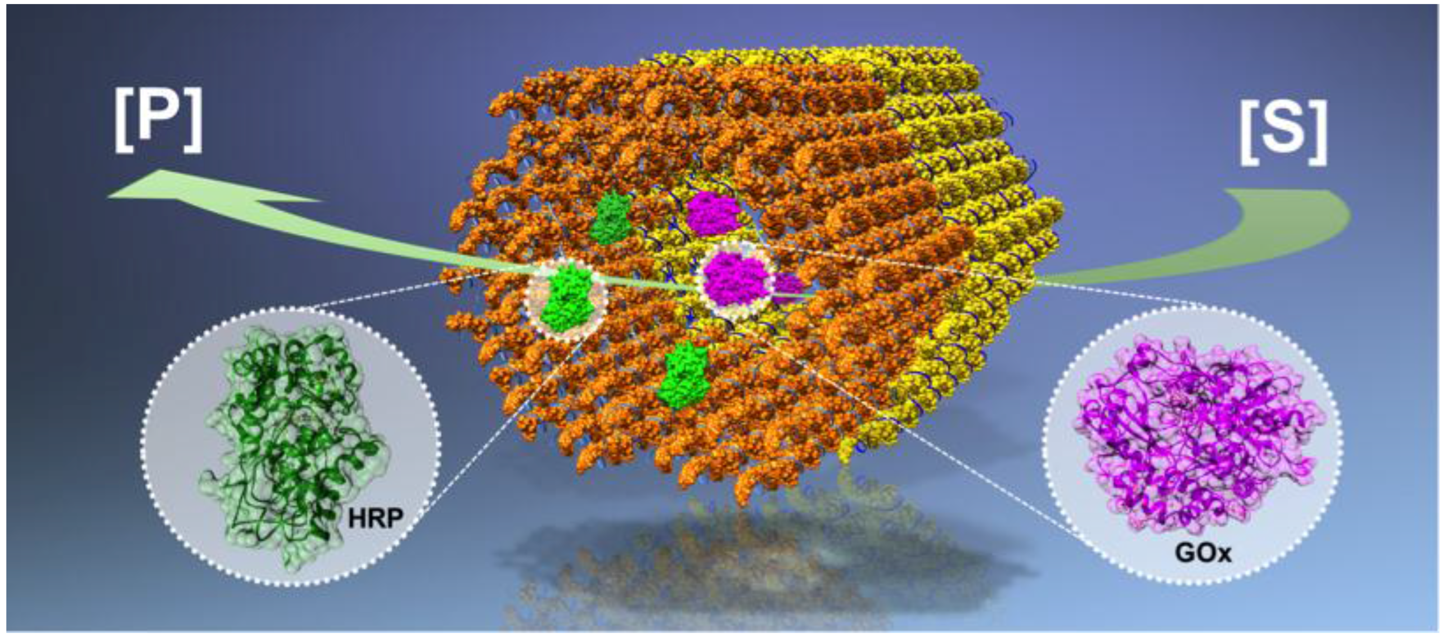 - Ngo, T.A.; Nakata, E.; Saimura, M.; Morii, T. Spatially organized enzymes drive cofactor-coupled cascade reactions. J. Am. Chem. Soc. 2016, 138, 3012–3021. [Google Scholar] [CrossRef] [PubMed]