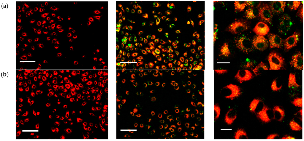 3.6. Quantitative Analysis of Particle Cellular Internalization