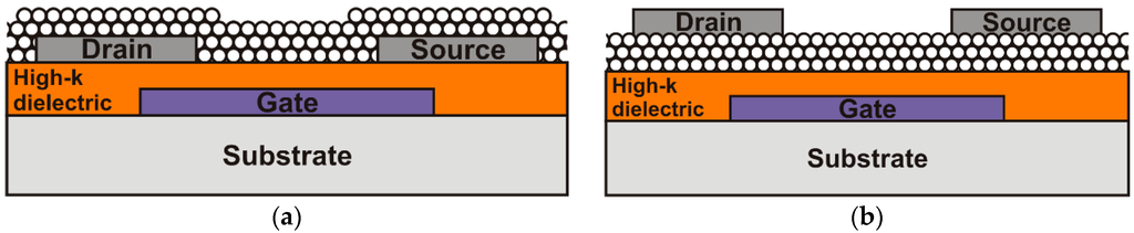 - Diekmann, T.; Pannemann, C.; Hilleringmann, U. Dielectric layers for organic field effect transistors as gate dielectric and surface passivation. Phys. Stat. Sol. (A) 2008, 205, 564–577. [Google Scholar] [CrossRef]