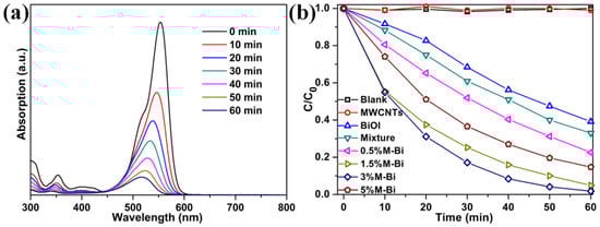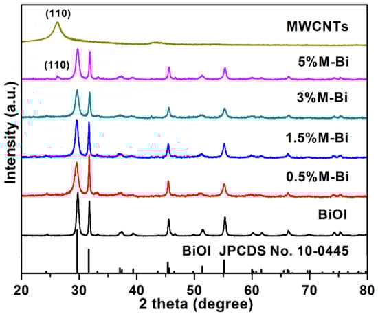 - Zhang, X.; Li, S.; Hu, S.; Chen, J.; Jiang, W.; Zhang, J.; Ji, L.; Cai, L.; Wang, Y.; Song, W.; et al. Flower-like MWCNTs/Bi2O2CO3 composites with enhanced photocatalytic activity under simulated solar light irradiation. Mater. Lett. 2016, 185, 50–53. [Google Scholar] [CrossRef]
