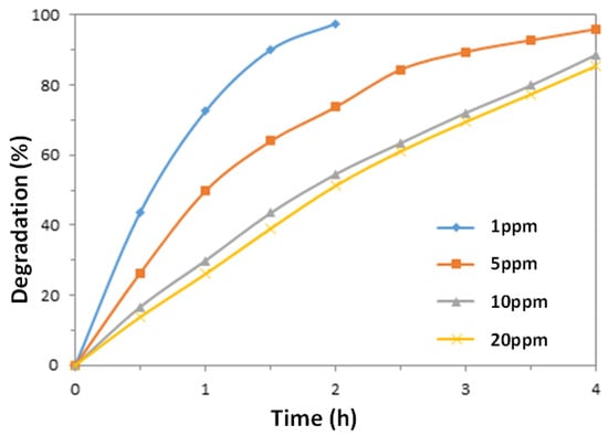 - Bahnemann, W.; Muneer, M.; Haque, M.M. Titanium dioxide-mediated photocatalysed degradation of few selected organic pollutants in aqueous suspensions. Catal. Today 2007, 124, 133–148. [Google Scholar] [CrossRef]