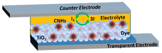 Configuration of a dye-sensitized solar cell (DSSC) using CNHs as additive.