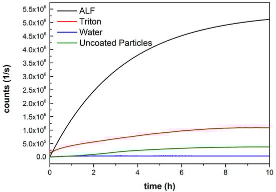 The UV/Vis measurements were performed on a Lambda 1050 UV/Vis/NIR spectrometer form Perkin Elmer (Waltham, MA, USA). The software used to record the measured spectra was Perkin Elmer UVWinLab (Waltham, MA, USA). For the measurements, the loaded coated particles were dissolved in ALF to facilitate the release of all their cargo. 1 mL of this solution was then diluted with 2 mL H2O yielding a total of 3 mL and measured in a quartz cuvette. For the pure drugs, 1 mL of the aqueous solution was diluted with 1 mL H2O and 1 mL ALF.