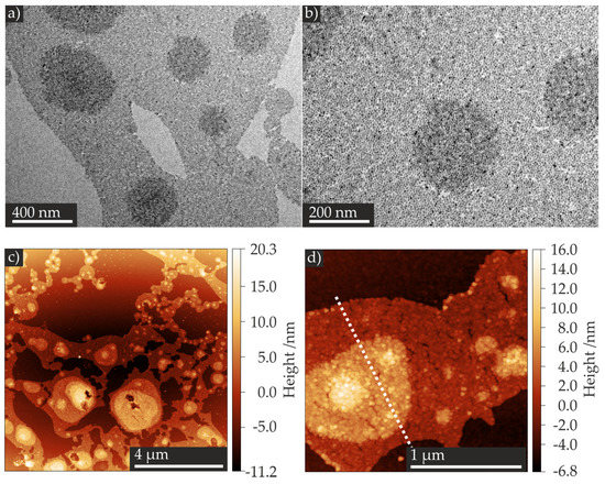 In order to obtain TiO2 NP monolayer films, we followed the method of Santhanam et al., in which the authors applied for the monolayer formation of hydrophobic gold NPs [33]. Briefly, the synthesized sub-10 nm TiO2 NPs were dispersed in an organic solvent and were dropped on a water surface with a controlled surface curvature. Due to the evaporation of the organic solvent, a self-assembled monolayer was formed on the water surface. In order to perform TEM investigations of the self-assembled film immobilized at the water/air surface, the surface was touched with a carbon coated TEM grid. A schematic drawing of the method is shown in Figure 2a,b.