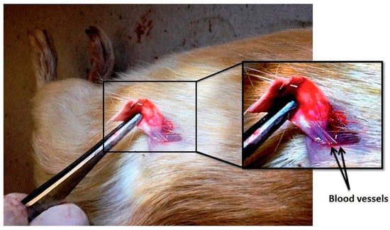 Even though generation of ROS is often associated with cytotoxicity and necrotic cell death, Barui et al. successfully demonstrated for the first time the proangiogenic properties of ROS generated by ZnO NFs, and their use in wound healing applications [20]. ZnO NFs were suspended in a sterile buffer solution with a concentration of 10 mg·mL−1. The proangiogenic properties of the ZnO NFs were first evaluated by cell proliferation and cell cycle analyses. This last is of particular importance in the evaluation of the proangiogenic properties, since it represents the chain of events taking place in the cells leading to their division and replication/duplication. For these purposes, HUVECs were treated with ZnO NFs at different concentrations (0, 5, 10 and 20 μg·mL−1). Then, radioactive [3H]-thymidine and propidium iodide were fixed to evaluate cell proliferation and cycles. It was observed that ZnO NFs promoted HUVEC proliferation with respect to the untreated NFs, slightly indipendently of the ZnO dose. On the other hand, cell-cycle analyses highlighted that a significant percentage of the HUVECs were in the S-phase after administering ZnO NFs, i.e., the phase responsible for the synthesis of DNA and centrosomes. Finally, the proangiogenic properties were evaluated in vivo by a standard chick embryo angiogenesis (CEA) assay. Both untreated and egg yolks treated with ZnO NFs at different concentrations ranging from 1 to 20 μg were analyzed. The formation of new blood vessels took place in a dose-dependent way after 4 h, as visible in Figure 14. Additionally, ZnO NFs also promoted endothelial cell migration, showing the ability to close a scratch in a wound healing assay compared to the control sample. Both in the case of CEA and the wound healing assays, a green fluorescence emission signal due to the presence of H2O2 was detected only for HUVECs treated with ZnO NFs. H2O2 is a signaling molecule for angiogenesis which can be produced by mitochondria. Therefore, the authors hypothesized the oxidant role played by ZnO NFs, directly inactivating protein tyrosine phosphatase and tensin homolog in the cytoplasm via the oxidation of cysteine, finally leading to mitochondrial H2O2 production. Therefore, it was claimed that ROS generation could be a plausible mechanism for the observed angiogenic properties of ZnO NFs.