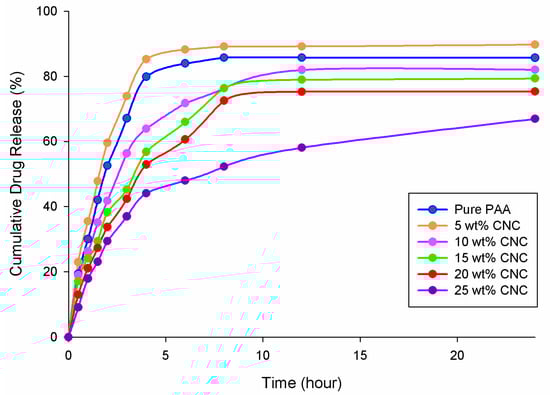 | 25 wt % CNC/PAA | 110 ± 16 | 27.5 ± 0.8 |