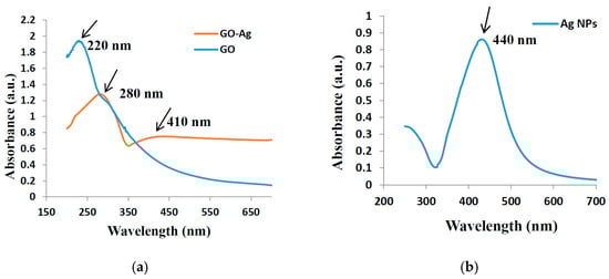 UV–visible of (a) GO and GO-Ag nanocomposites (b) Ag NPs.