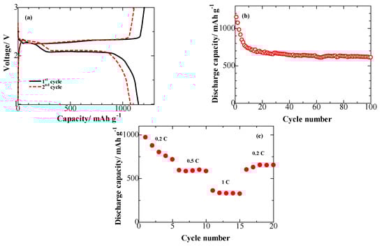 The obvious advantages of carbon materials include their high conductivity and good porosity, and thus carbon has been demonstrated as an effective sulfur immobilizer for Li/S batteries with high performance. For example, Xi et al. prepared abundant porous carbon samples from different zinc-containing metal-organic frameworks, which possessed both mesoporosity and microporosity for good sulfur loading and electrochemical utilization [8]. A porous nano-sized spherical carbon was prepared by Schuster et al. with a two-step casting process, to form the cathode of lithium/sulfur batteries in combination with sulfur via a melt-diffusion strategy. As-prepared carbon with an abundant surface area of 2445 m2·g−1 allows the sulfur to distribute homogeneously into the pores, greatly enhancing the electrochemical behavior of the corresponding cathodes [7].