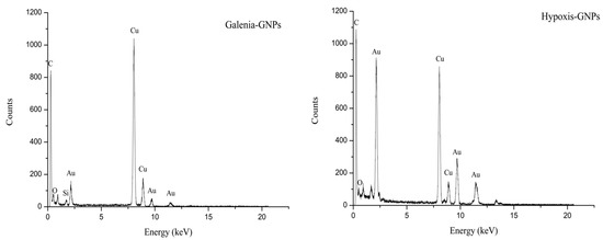 EDX spectra of Galenia-GNPs and Hypoxis-GNPs.
