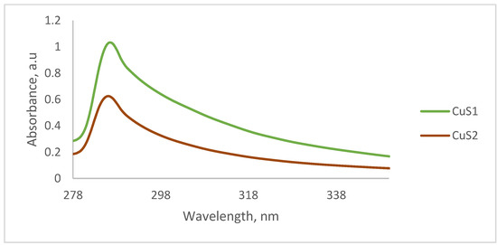 3.1. Optical Properties of the CuS Nanoparticles