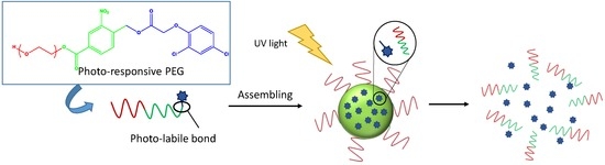 - Ding, K.; Shi, L.; Zhang, L.; Zeng, T.; Yin, Y.; Yi, Y. Synthesis of photoresponsive polymeric propesticide micelles based on peg for the controlled release of a herbicide. Polym. Chem. 2016, 7, 899–904. [Google Scholar] [CrossRef]