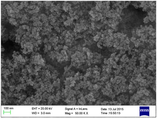 Field emission scanning electron microscopy (FESEM) micrograph of nano-SiO2 powder (magnification = 50,000).