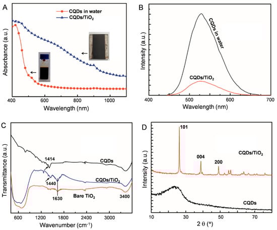 3.3. In Situ Growth of CQDs on TiO2 Surface