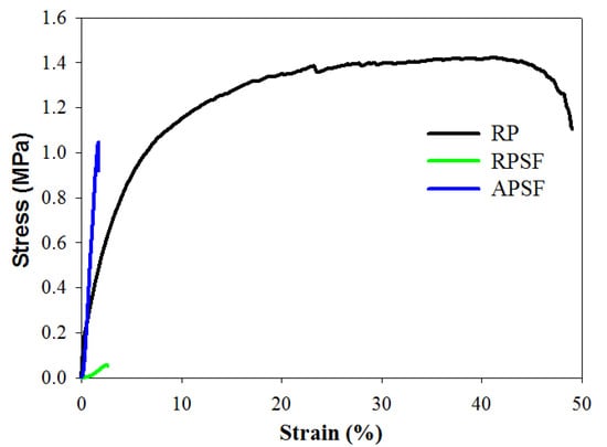 The tensile stress-strain curves of random PCL (RP), random PCL/SF (RPSF) and aligned PCL/SF (APSF) nanofiber scaffolds.