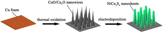 Zhou L, He Y, Jia C, Pavlinek V, Saha P, Cheng Q. Construction of Hierarchical CuO/Cu2O@NiCo2S4 Nanowire Arrays on Copper Foam for High Performance Supercapacitor Electrodes. Nanomaterials. 2017; 7(9):273. https://doi.org/10.3390/nano7090273