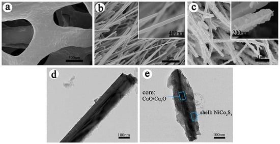2.3. Synthesis of CuO/Cu2O@NiCo2S4 Core-shell Nanostructures