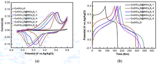 - Zhao, J.; Shu, X.; Wang, Y.; Yu, C.; Zhang, J.; Cui, J.; Qin, Y.; Zheng, H.; Liu, J.; Zhang, Y.; et al. Construction of CuO/Cu2O@CoO core-shell nanowire arrays for high-performance supercapacitors. Surf. Coat. Technol. 2016, 299, 15–21. [Google Scholar] [CrossRef]