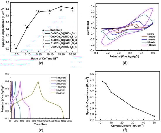 - Chen, W.; Xia, C.; Alshareef, H. One-step electrodeposited nickel cobalt sulfide nanosheet arrays for high-performance asymmetric supercapacitors. ACS Nano 2014, 8, 9531–9541. [Google Scholar] [CrossRef] [PubMed]