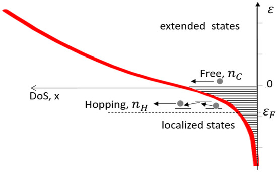 - Miller, A.; Abrahams, E. Impurity Conduction at Low Concentrations. Phys. Rev. 1960, 120, 745–755. [Google Scholar] [CrossRef]