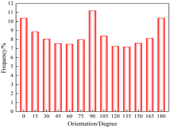 The fiber orientation distribution (FOD) was obtained by the DHU-11 nanofiber orientation image analysis system (Shanghai Beiang Scientific Instruments Co., Ltd., Donghua University, Shanghai, China). This system can collect a series of images in different layers that cover the depth of the target with automatic focusing. Afterward, it can conduct fiber edge image processing and refining on the collected image information of the materials. Furthermore, it can automatically calculate the orientation of fiber webs within 1–180° based on a curvilinear integral algorithm. Finally, the original data of orientation distribution and the distribution curve can be obtained. Related research has shown that image fusion technology can be used to accurately measure the FOD of fiber mats [40,41].