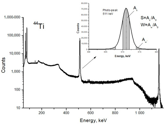 DB spectra were acquired by collecting 2.5 × 105 counts and analyzed using the SP software package (Institute of Nuclear Physics PAS, Krakow, Poland). The line-shape of S- and W-parameters were also evaluated using the aforementioned software [25]. The S-parameter is the ratio of the central peak area to the entire area of the Gaussian distribution; the W-parameter is the ratio of the Gaussian distribution side area to the entire area (Figure 3). The S-parameter is sensitive to the annihilation with low momentum valence and unbound electrons. The W-parameter depends on high-energy core electrons.
