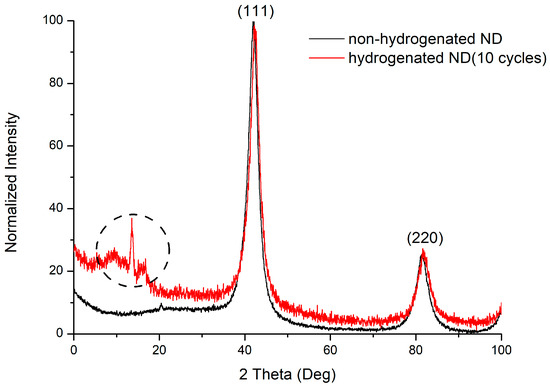 Diffraction pattern of non-hydrogenated and hydrogenated nanodiamonds.