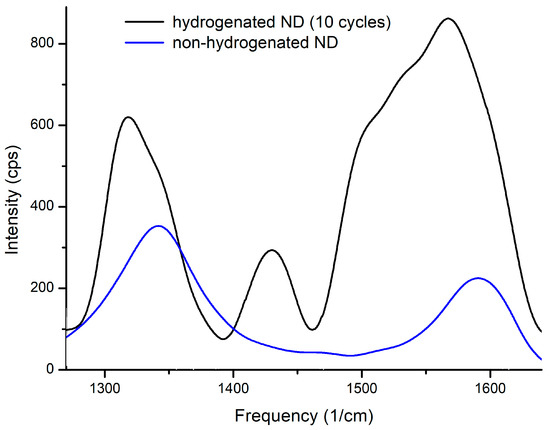 Raman spectra of nanodiamonds before and after hydrogenation are presented at Figure 8.