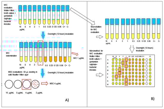 Schemes of: (A) MIC and MBC tests; (B) MIC test by micro-method.