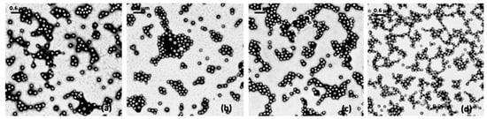 TEM micrograph showing the morphology of optimized gentamicin sulfate loaded nanoparticles batch #25: after centrifugation (a); freeze-dried without cryoprotectants (b); freeze-dried with PVP K17 (c); freeze-dried with a binary mixture of PVP K17/PVP K 32 (d).