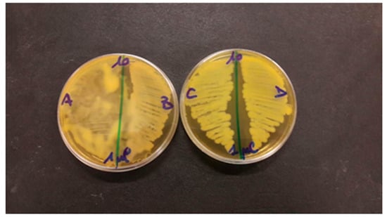 An aliquot of 10 µL was than collected from each tube- and seeded in MH agar plates; after overnight incubation at 35 ± 2 °C, bacterial growth was recorded (Figure 1).