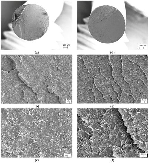 3.3. Morphological Analyses on Filaments and 3D-Printed Parts