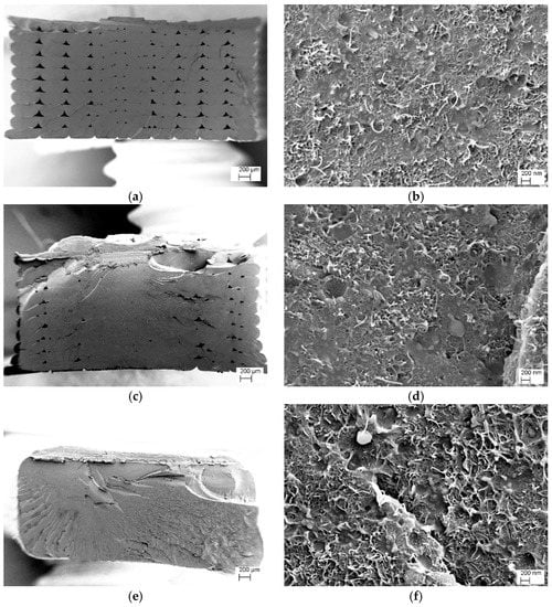 The fracture surface of cryogenically broken filaments and 3D-printed specimens were analyzed by electron microscopy.