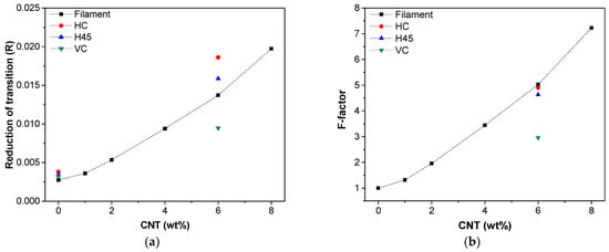 Moreover, following Equation (2), a F-factor has been defined as in Equation (3) as the relative R ratio between composite and matrix and it is formally derived from the inverse of C-factor reported in the literature [23,24]: