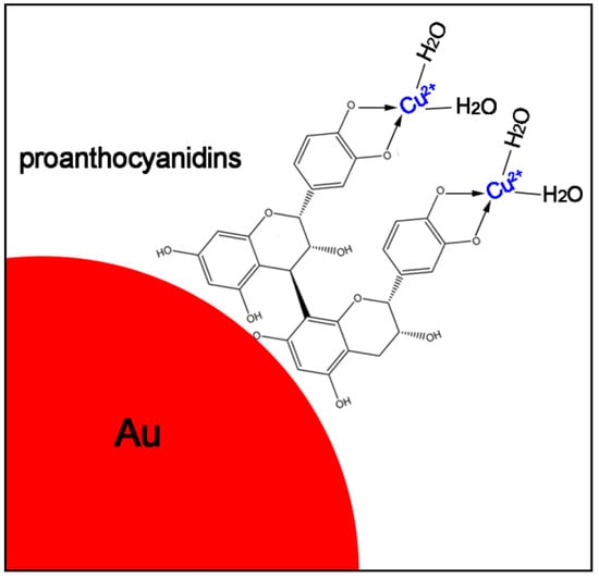 Schematic illustration of the interaction process between proanthocyanidin-functionalized gold nanoparticles and heavy metal ions (Example for Cu2+).