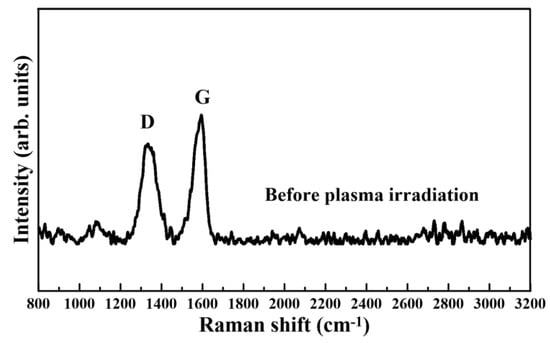 Raman spectrum measured on GO films before plasma irradiation.