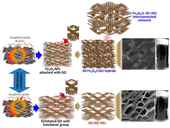 Schematic formation mechanism of three-dimensional Fe3O4/rGO hybrids. Reproduced with permission from [113]. Copyright American Chemical Society, 2017.