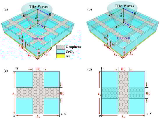- Ye, L.; Chen, Y.; Cai, G.; Liu, N.; Zhu, J.; Song, Z.; Liu, Q.H. Broadband absorber with periodically sinusoidally-patterned graphene layer in terahertz range. Opt. Express 2017, 25, 11223–11232. [Google Scholar] [CrossRef] [PubMed]