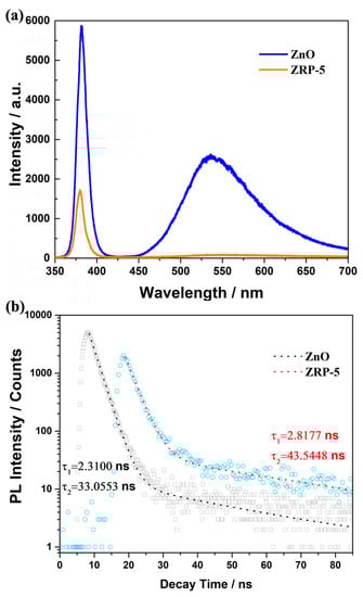 - Zhang, L.; Cheng, H.; Zong, R.; Zhu, Y. Photocorrosion Suppression of ZnO Nanoparticles via Hybridization with Graphite-like Carbon and Enhanced Photocatalytic Activity. J. Phys. Chem. C 2009, 113, 2368–2374. [Google Scholar] [CrossRef]