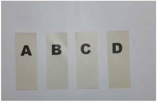 Typical photographic images of 30 μm-thick films of (a) κ-carr matrix; (b) κ-carr/CNC bionanocomposite; (c) κ-carr/OMMT bionanocomposite; and (d) hybrid κ-carr/CNC/OMMT bionanocomposite.